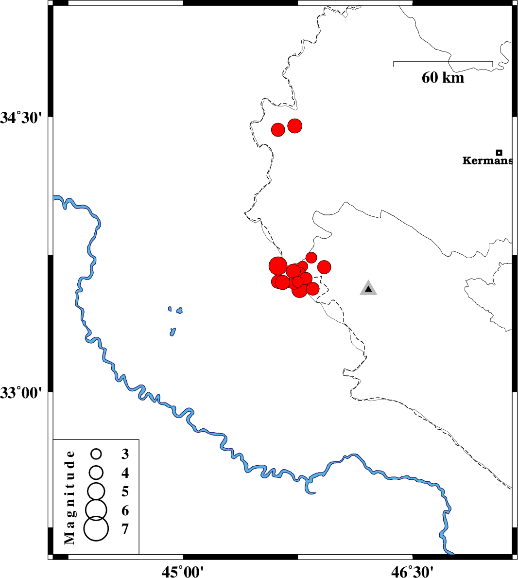 | 2019/04/01 | 10:29:12.2 | 14:59:12.2 | 33.687 | 45.78 | 12 | ML3.1 | Ilam Province, 52 km South-West of Gilan-E-Gharb | ||