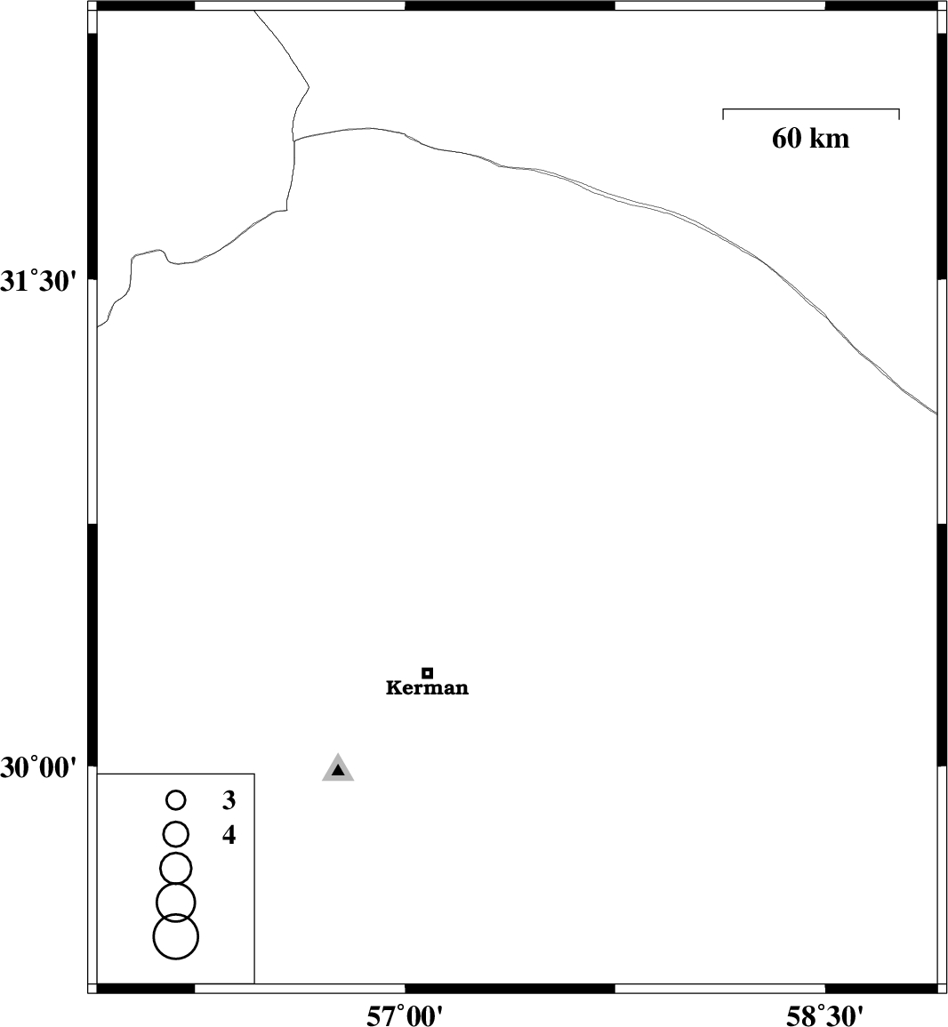2019/04/25 | 15:03:17.0 | 19:33:17.0 | 30.82 | 57.4 | 10 | Mb:4.6 | Kerman Province, 79 km -East of Zarand |