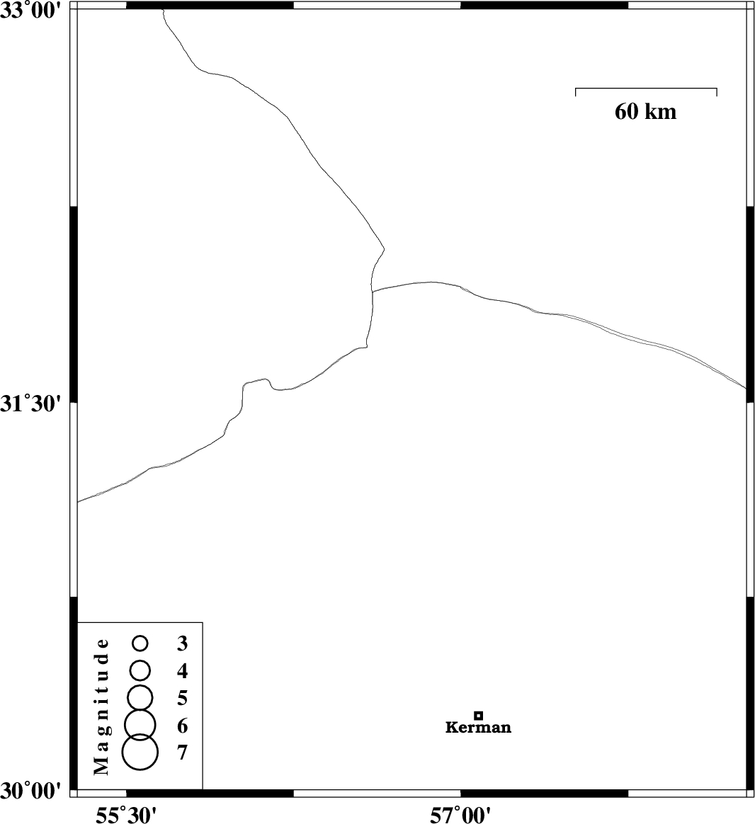 | 2019/05/11 | 11:39:59.9 | 16:09:59.9 | 31.5 | 56.78 | 7 | ML3.5 | Kerman Province, 26 km North of Ravar |