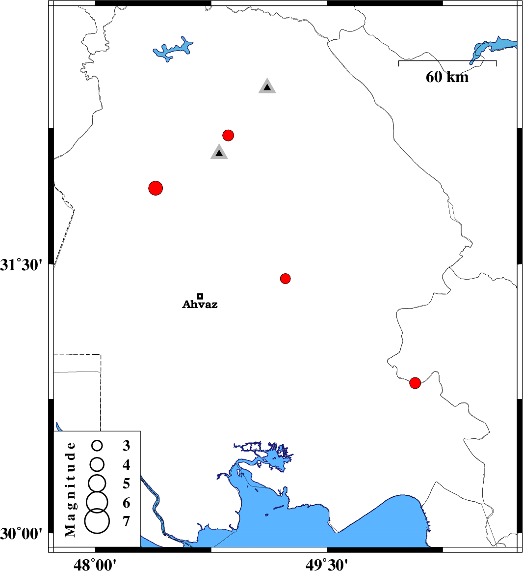 | 2019/04/26 | 04:30:19.2 | 09:00:19.2 | 32.21 | 48.86 | 7 | ML3.2 | Khoozestan Province, 19 km North of Shushtar | ||