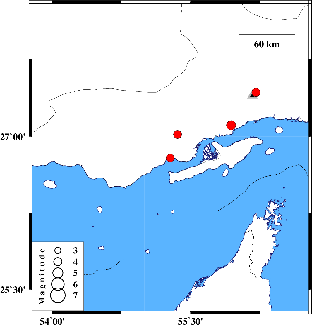 | 2019/05/13 | 08:09:08.0 | 12:39:08.0 | 26.79 | 55.28 | 21 | ML4 | Hormozgan Province, 52 km North-East of Bandar-e lengeh | ||