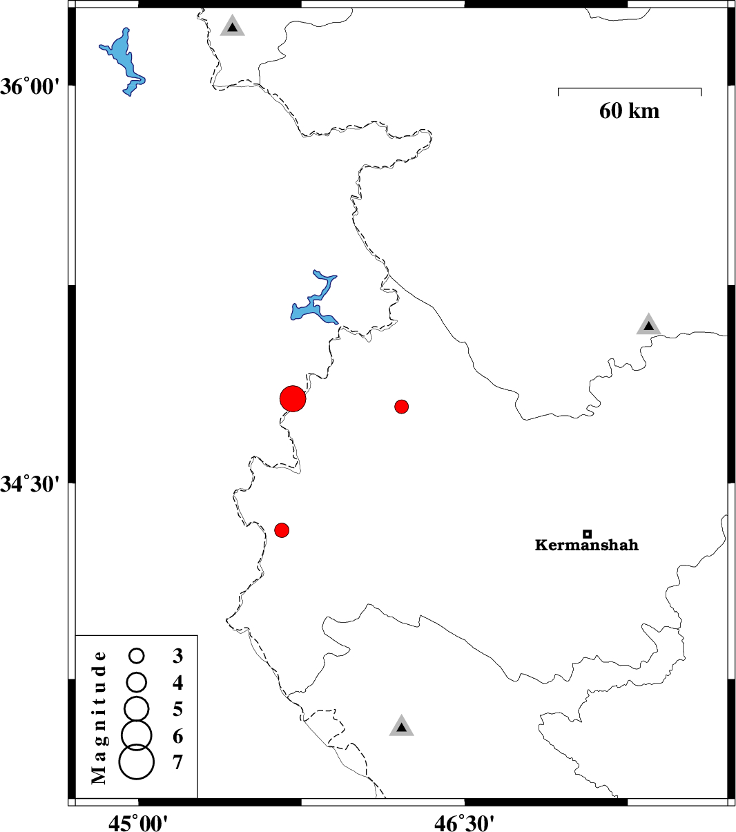 | 2019/05/11 | 10:28:59.8 | 14:58:59.8 | 34.82 | 45.71 | 16 | ML5.4 | Kermanshah Province, 13 km -West of Tazehabad | ||