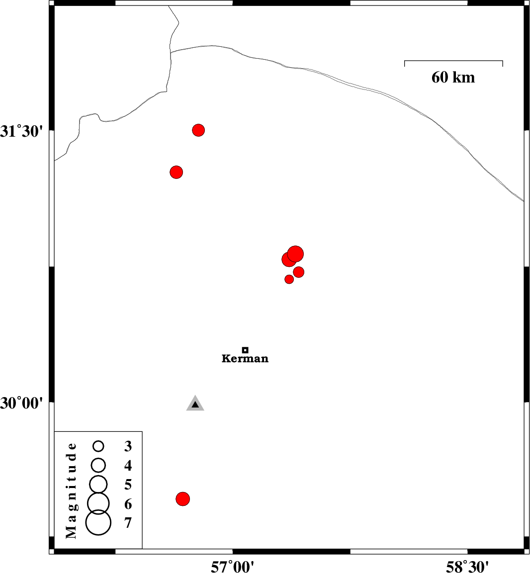 2019/04/16 22:43:48.4 03:13:48.4 30.7957.3610 Mb4.3 Kerman Province, 62 km North-East of Kerman