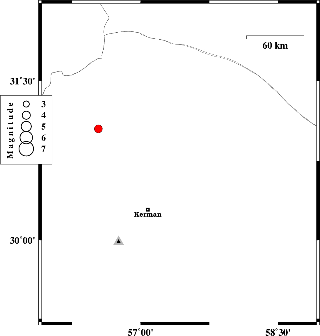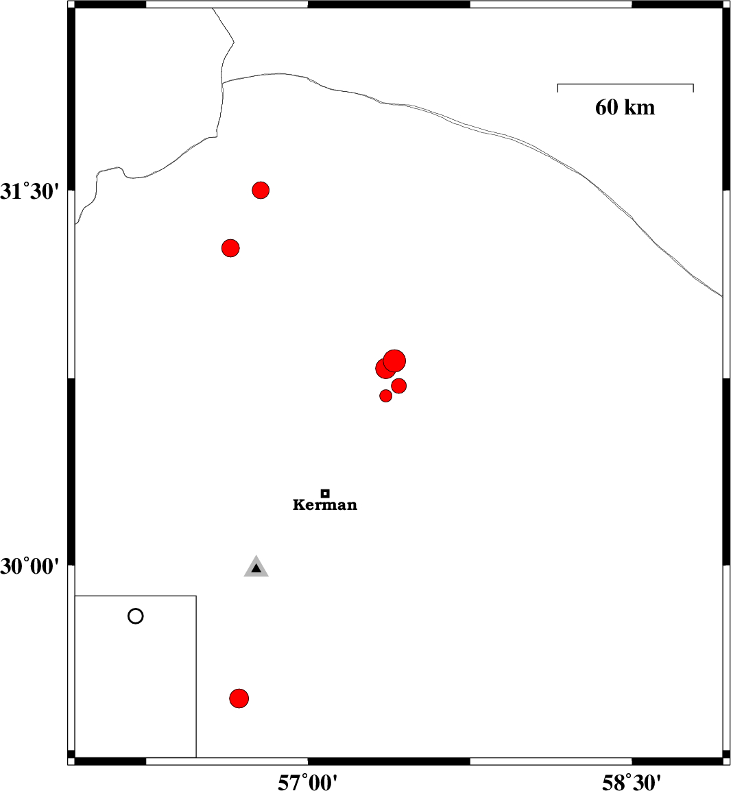 2019/05/12 23:32:52.7 04:02:52.7 30.6857.366 ML2.6 Kerman Province, 51 km North-East of Kerman