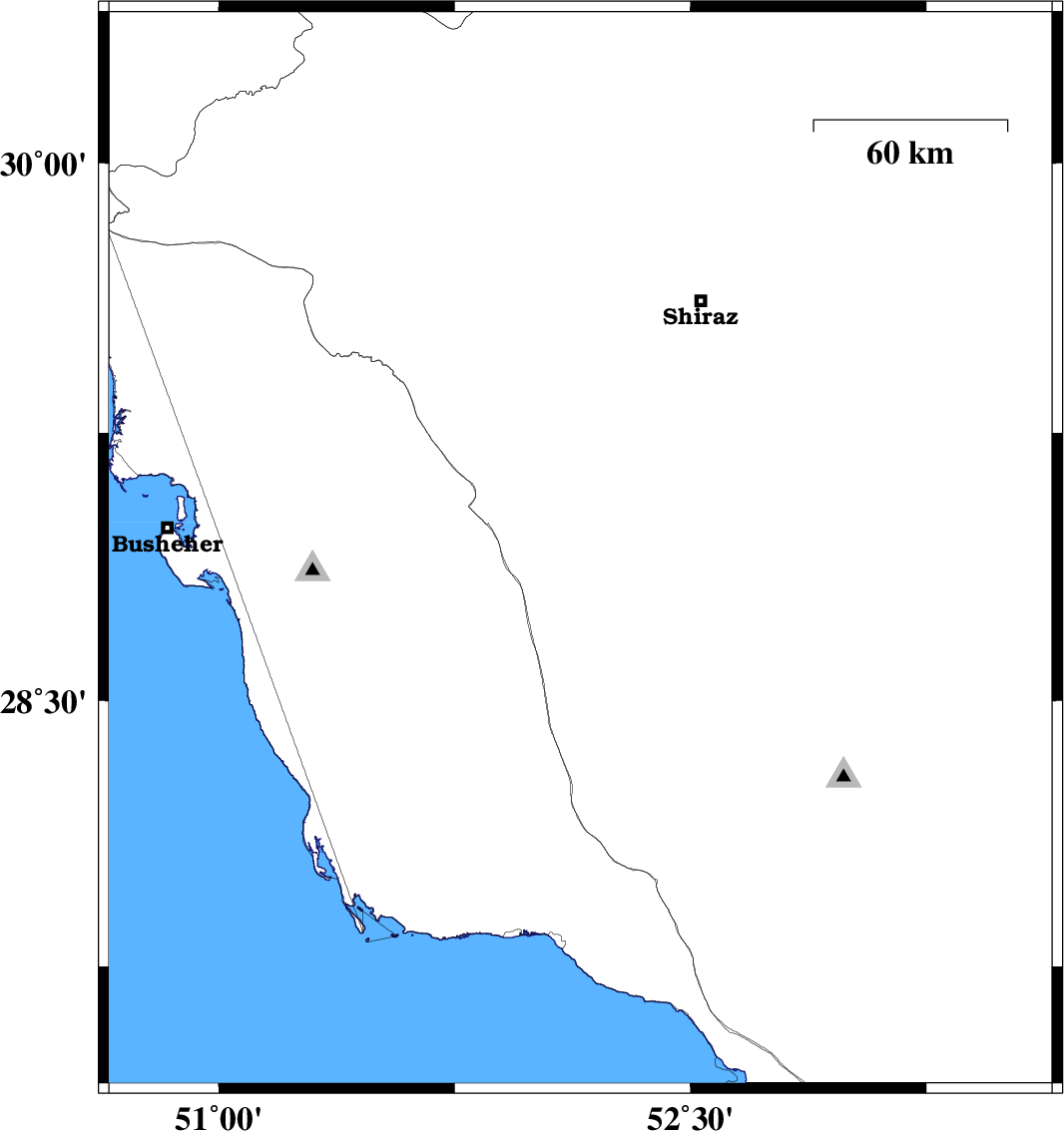 | 2019/05/12 | 09:13:17.2 | 13:43:17.2 | 30.14 | 51.77 | 6 | ML3.9 | Fars Province, 24 km -East of Nurabad | ||