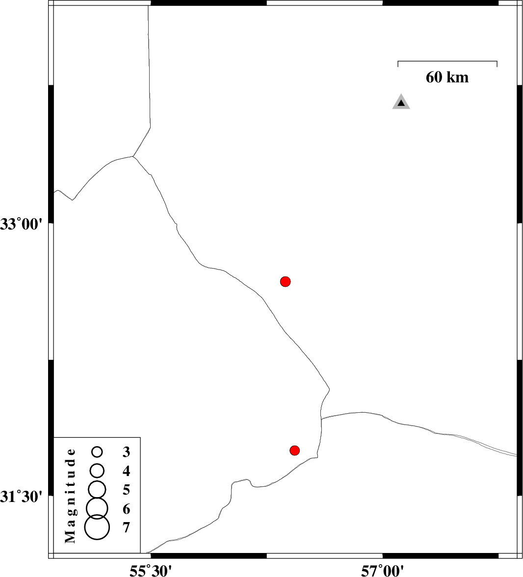 | 2019/05/25 | 22:35:58.8 | 03:05:58.8 | 32.68 | 56.37 | 12 | ML3 | Yazd Province, 115 km South-West of Tabas | ||