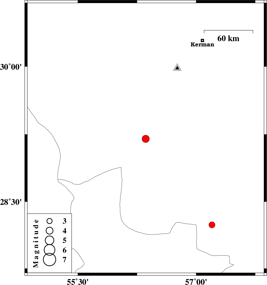 | 2019/05/29 | 16:01:35.8 | 20:31:35.8 | 28.24 | 57.2 | 12 | ML3.5 | Kerman Province, 58 km North-West of Kahnuj |