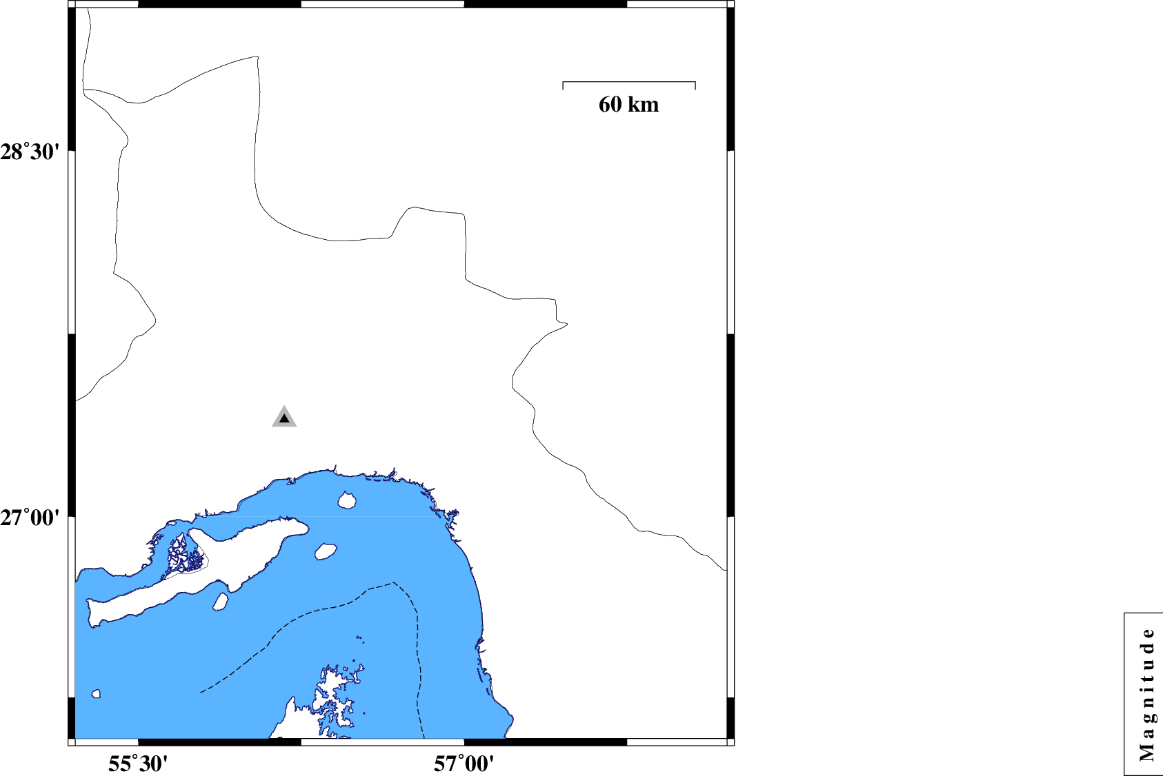 | 2019/05/31 | 10:21:16.8 | 14:51:16.8 | 27.58 | 56.71 | 15 | Mb3.7 | Hormozgan Province, 55 km North-West of Dehbarez | ||