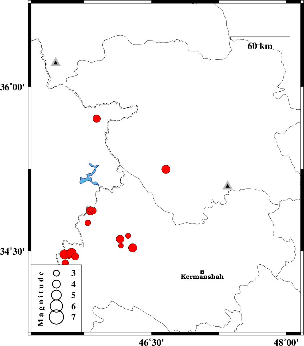 | 2019/06/12 | 18:02:58.5 | 22:32:58.5 | 34.45 | 45.65 | 14 | ML3.7 | Kermanshah Province, 10 km of Qasr-E-Shirin | ||