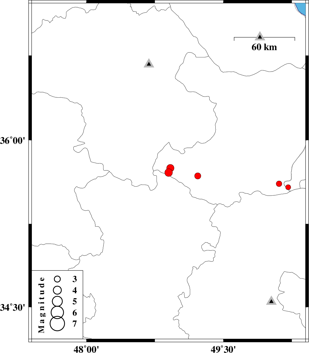 | 2019/05/26 | 04:34:11.8 | 09:04:11.8 | 35.75 | 48.92 | 8 | ML3.6 | Ghazvin Province, 42 km North-West of Razan | ||