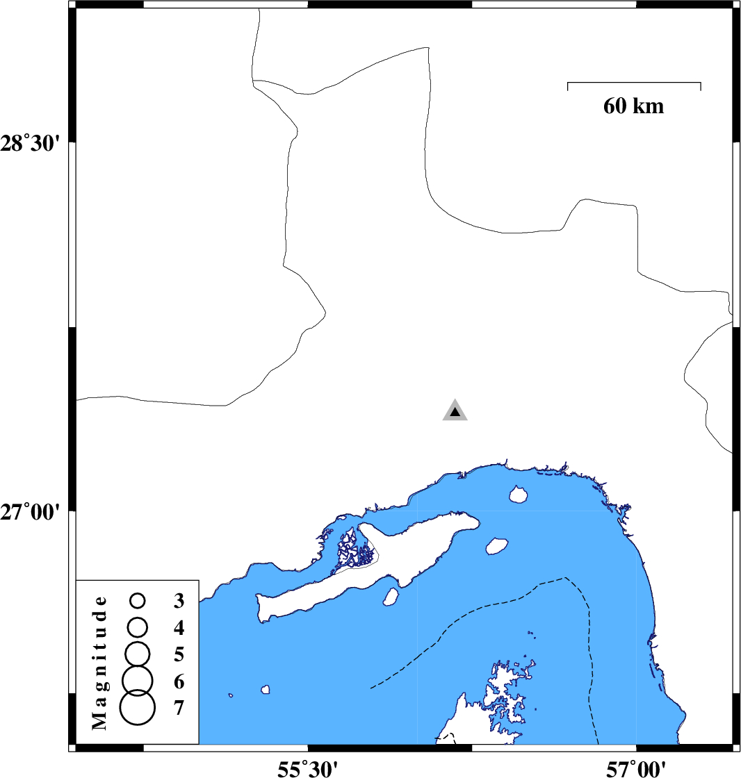 | 2019/06/17 | 13:32:25.8 | 18:02:25.8 | 27.54 | 55.94 | 10 | ML4.3 | Hormozgan Province, 52 km North-West of Bandar-e abbas |