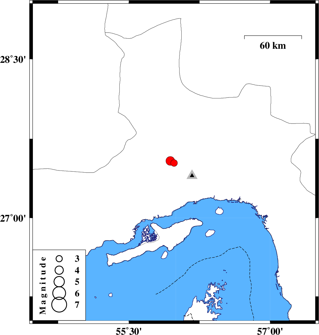 | 2019/06/17 | 13:32:25.8 | 18:02:25.8 | 27.54 | 55.94 | 10 | ML4.3 | Hormozgan Province, 52 km North-West of Bandar-e abbas |