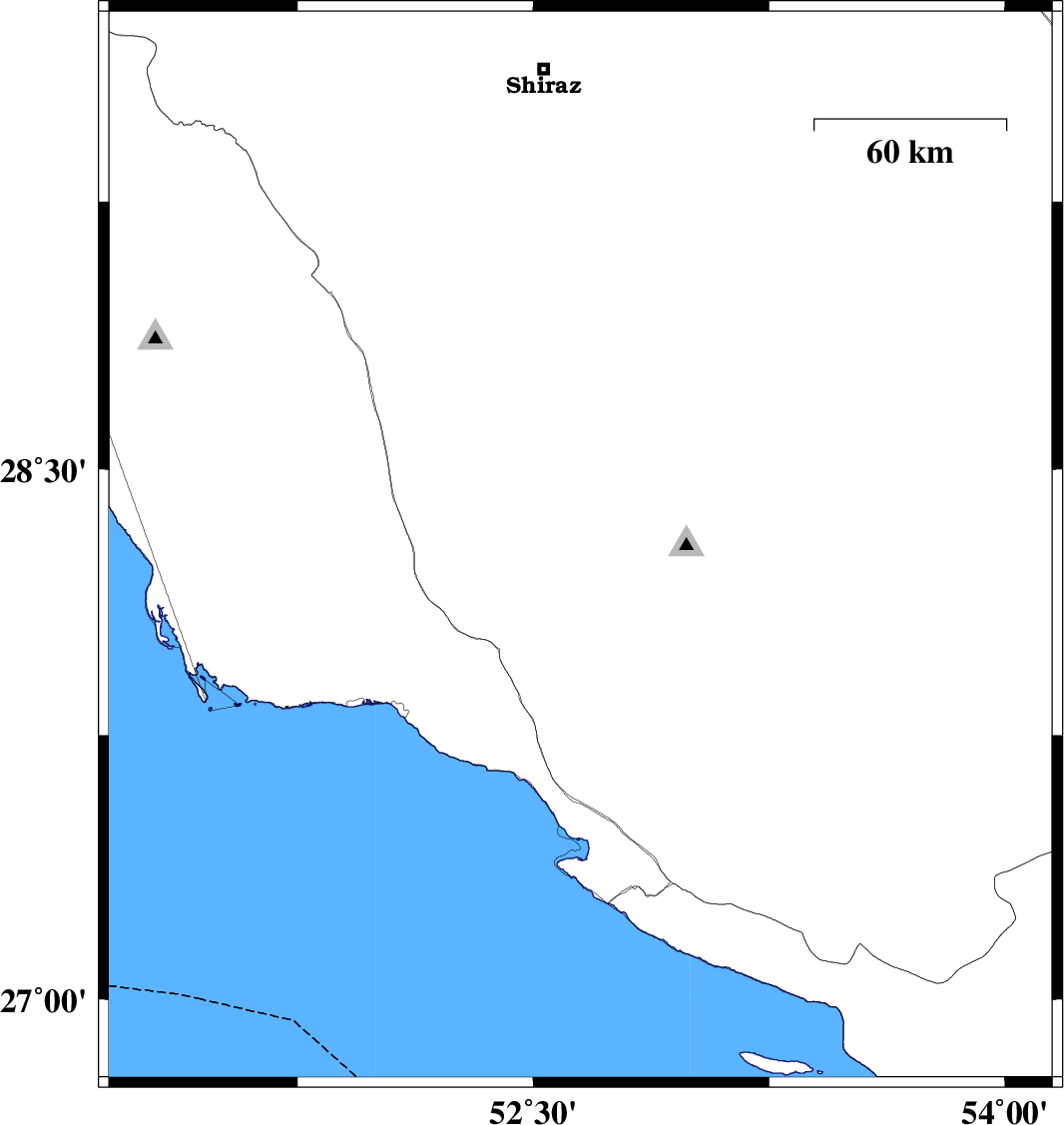 | 2019/05/24 | 09:25:15.9 | 13:55:15.9 | 28.92 | 52.15 | 8 | ML4 | Fars Province, 8 km of Farashband |