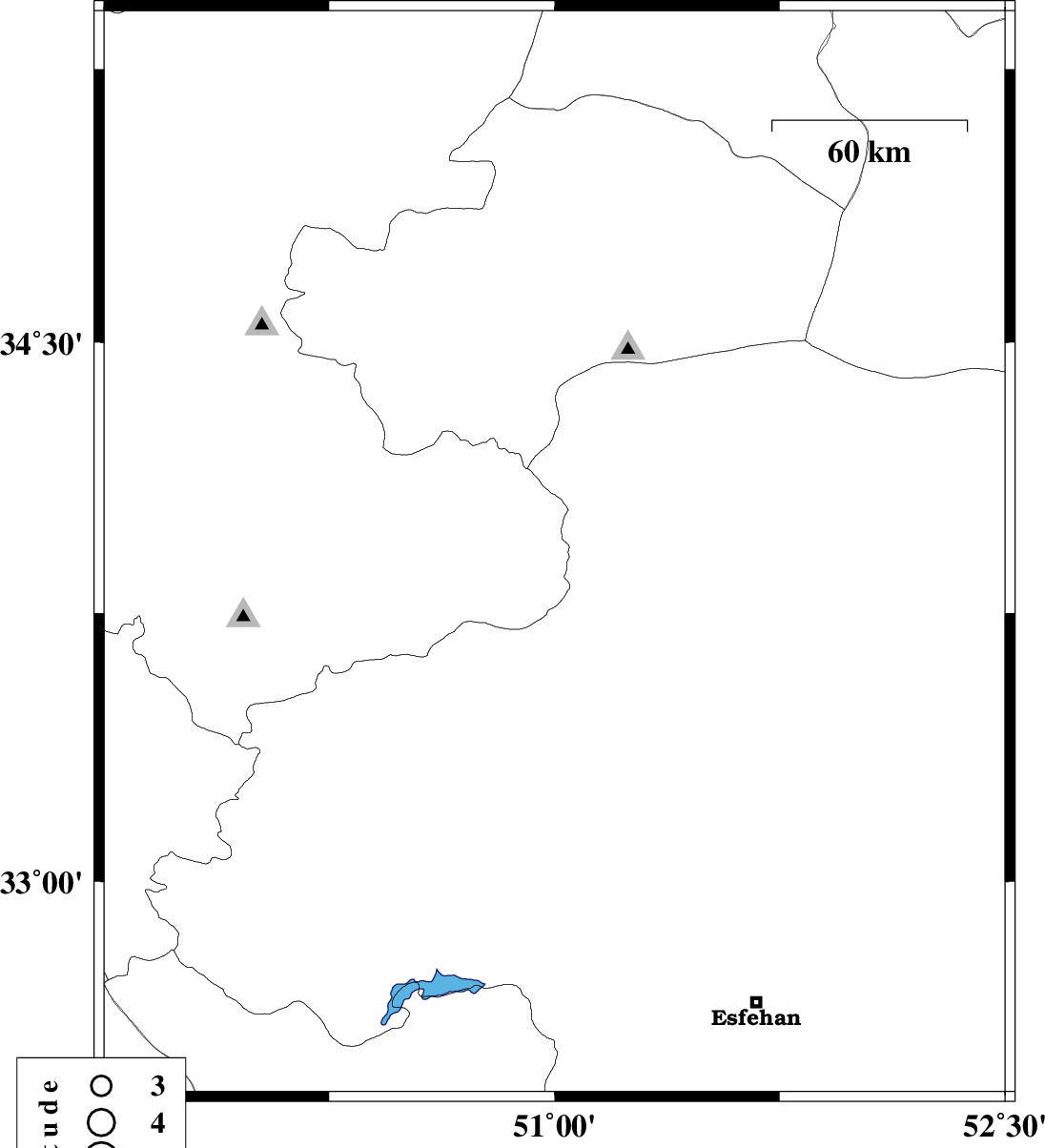 | 2019/06/28 | 19:43:09.1 | 00:13:09.1 | 33.91 | 51 | 10 | ML2.9 | Markazi Province, 31 km -East of Delijan |