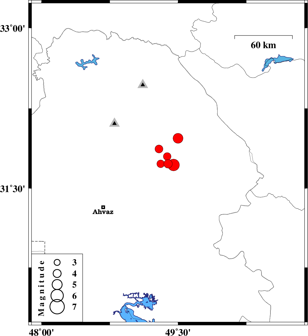 | 2019/07/08 | 07:36:49.1 | 12:06:49.1 | 31.73 | 49.31 | 14 | ML3.8 | Khoozestan Province, 23 km South of Masjed Soleyman | ||