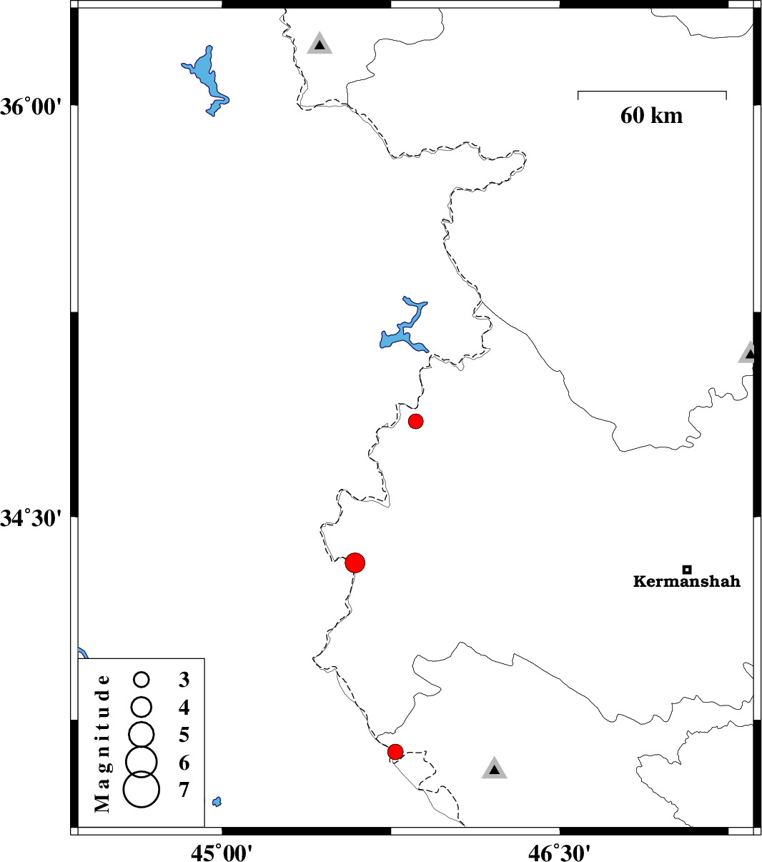 | 2019/07/10 | 21:29:30.0 | 01:59:30.0 | 34.33 | 45.59 | 9 | ML4 | Kermanshah Province, 21 km South of Qasr-E-Shirin |