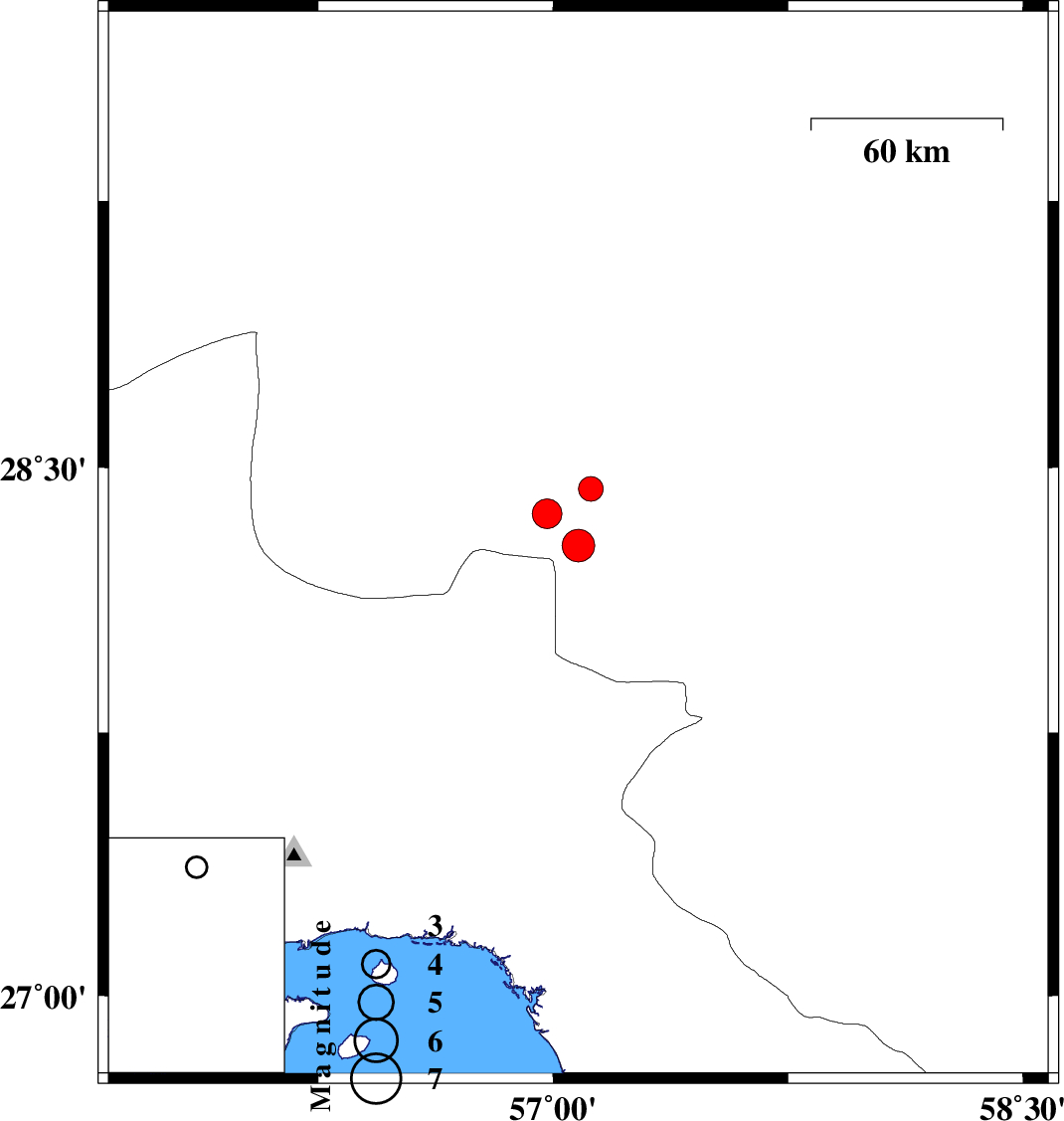 | 2019/07/16 | 16:21:08.6 | 20:51:08.6 | 28.28 | 57.08 | 10 | ML4.7 | Kerman Province, 71 km North-West of Kahnuj | ||