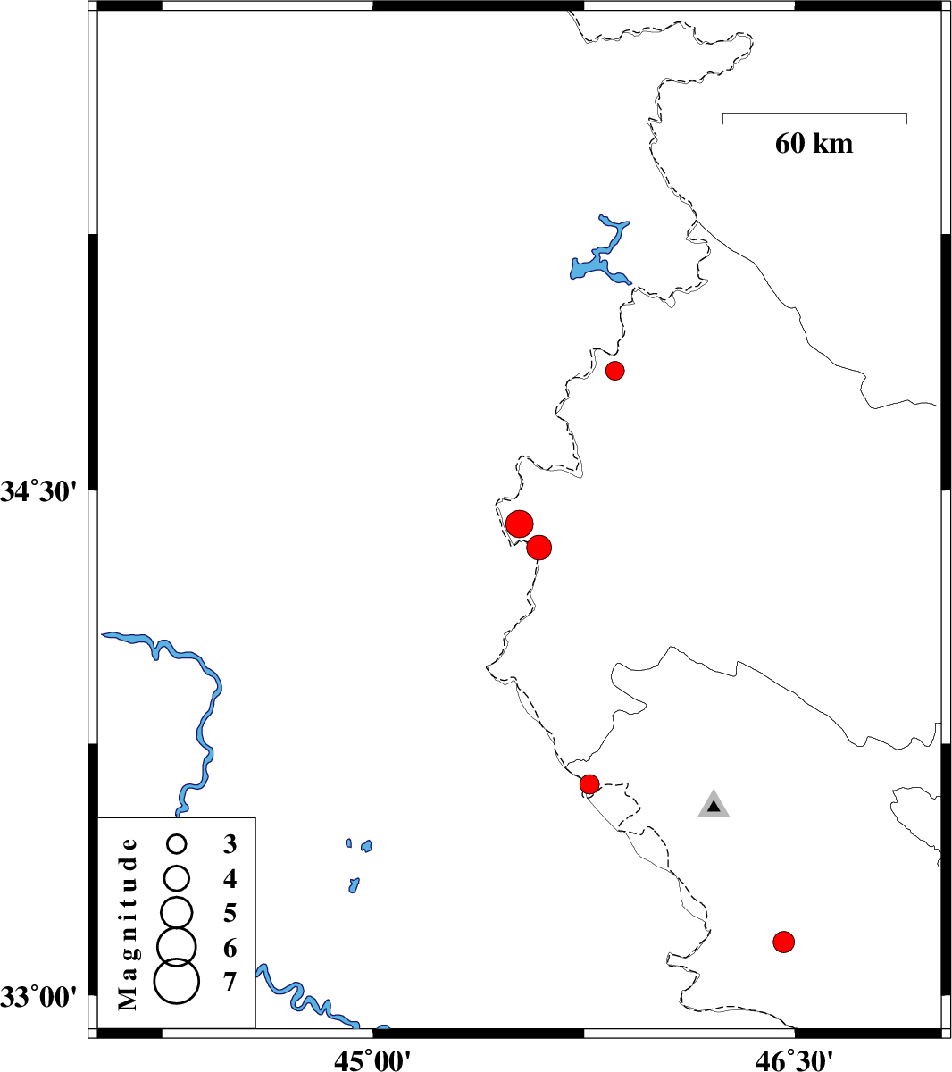 | 2019/07/10 | 21:29:30.0 | 01:59:30.0 | 34.33 | 45.59 | 9 | ML4 | Kermanshah Province, 21 km South of Qasr-E-Shirin |