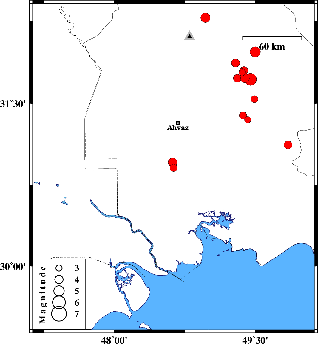 | 2019/06/21 | 14:00:52.3 | 18:30:52.3 | 31.12 | 49.85 | 10 | ML4 | Khoozestan Province, 29 km South-East of Ramhormoz |