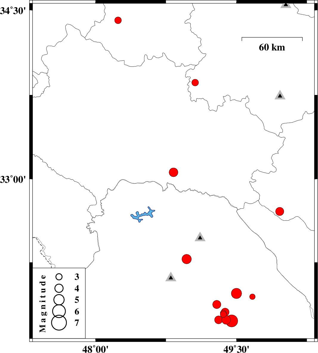 | 2019/07/13 | 22:25:21.6 | 02:55:21.6 | 31.78 | 49.36 | 13 | ML3 | Khoozestan Province, 18 km South of Masjed Soleyman | ||