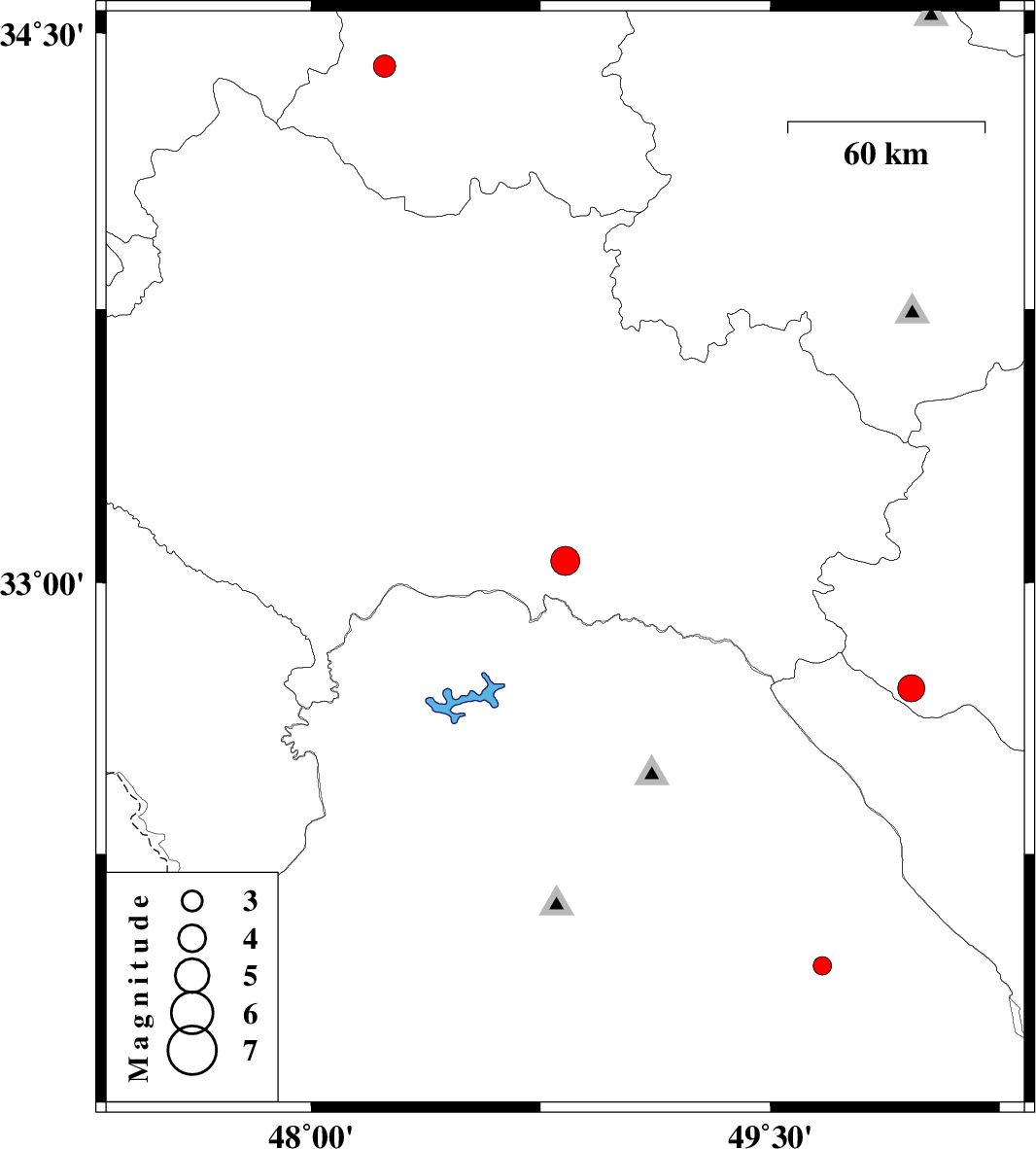 | 2019/07/21 | 08:24:29.9 | 12:54:29.9 | 33.06 | 48.83 | 19 | ML4.3 | Lorestan Province, 52 km South-West of Dorud | ||