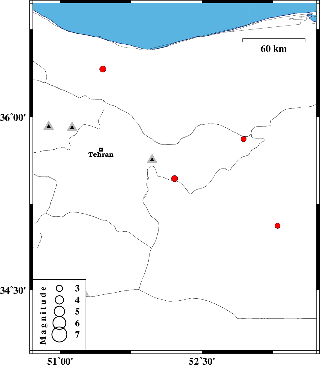 | 2019/06/24 | 06:31:28.2 | 11:01:28.2 | 35.81 | 52.94 | 12 | ML2.5 | Tehran Province, 17 km -East of Firuzkuh |