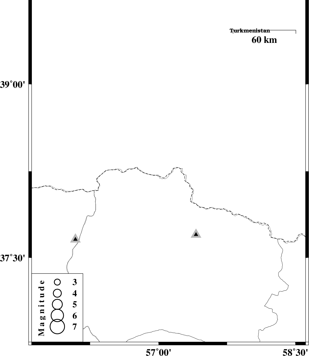 | 2019/07/29 | 09:27:51.0 | 13:57:51.0 | 38.26 | 57.11 | 12 | Mb3.9 | Turkmenistan, 80 km North-East of Ashkhaneh |