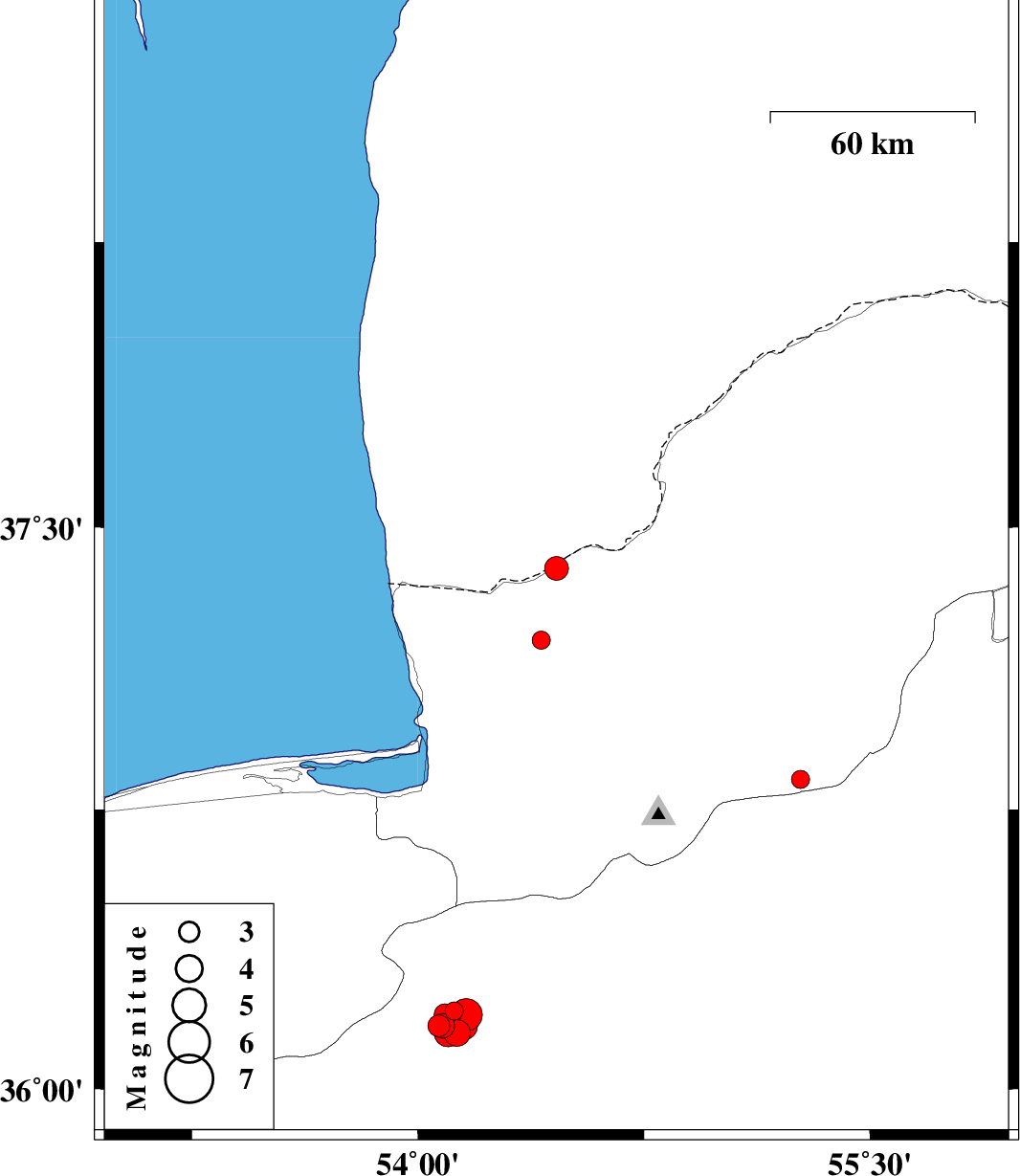 | 2019/07/07 | 16:05:42.2 | 20:35:42.2 | 36.17 | 54.08 | 12 | Mb3.6 | Semnan Province, 24 km -West of Damghan | ||