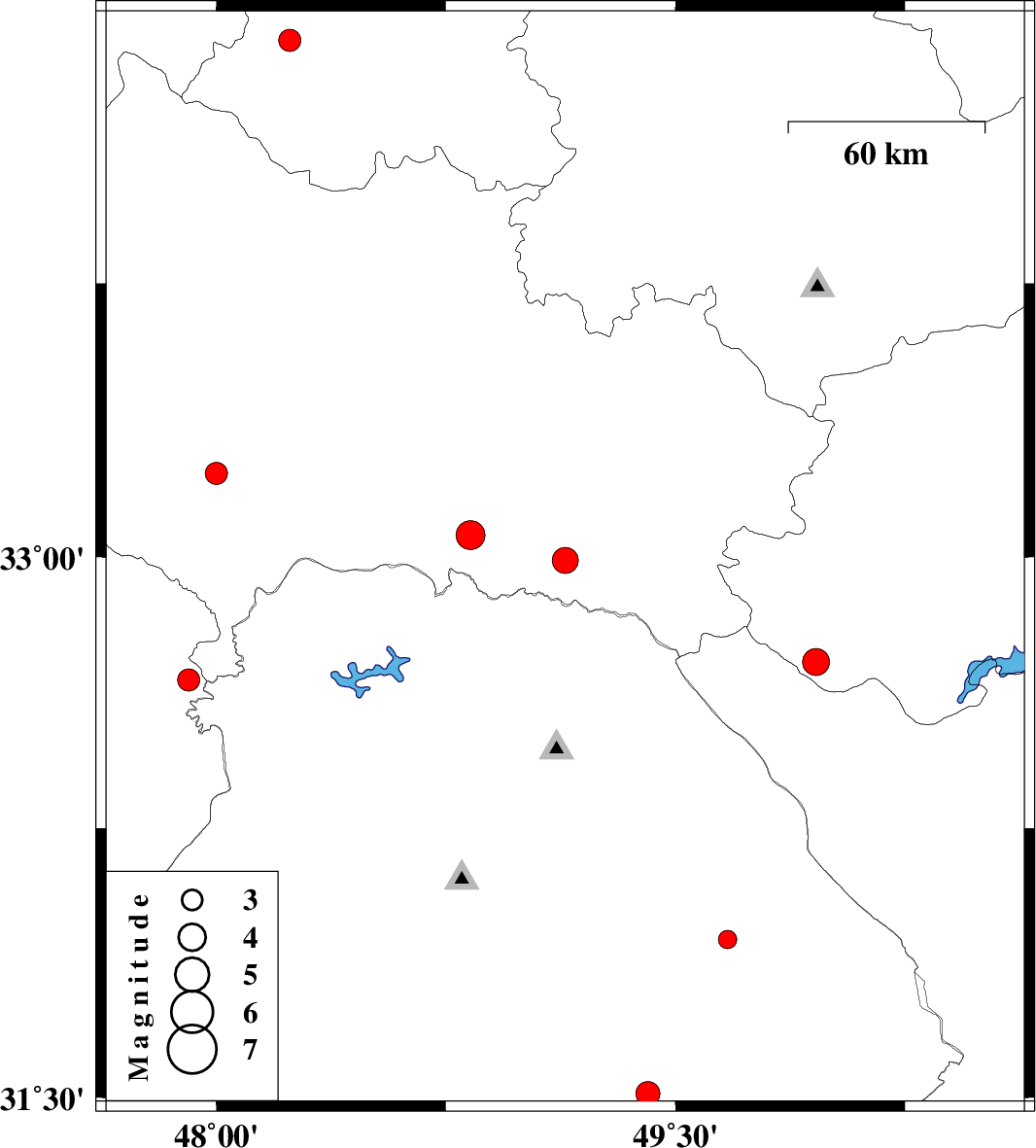 | 2019/07/15 | 20:51:15.4 | 01:21:15.4 | 32.71 | 49.96 | 9 | ML3.9 | Esfahan Province, 29 km South-West of Fereydunshahr |