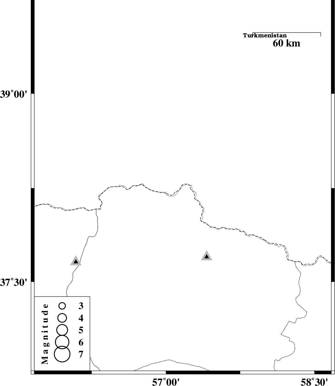| 2019/08/16 | 08:39:53.8 | 13:09:53.8 | 38.28 | 57.17 | 8 | ML2.9 | Turkmenistan, 84 km North-East of Ashkhaneh |