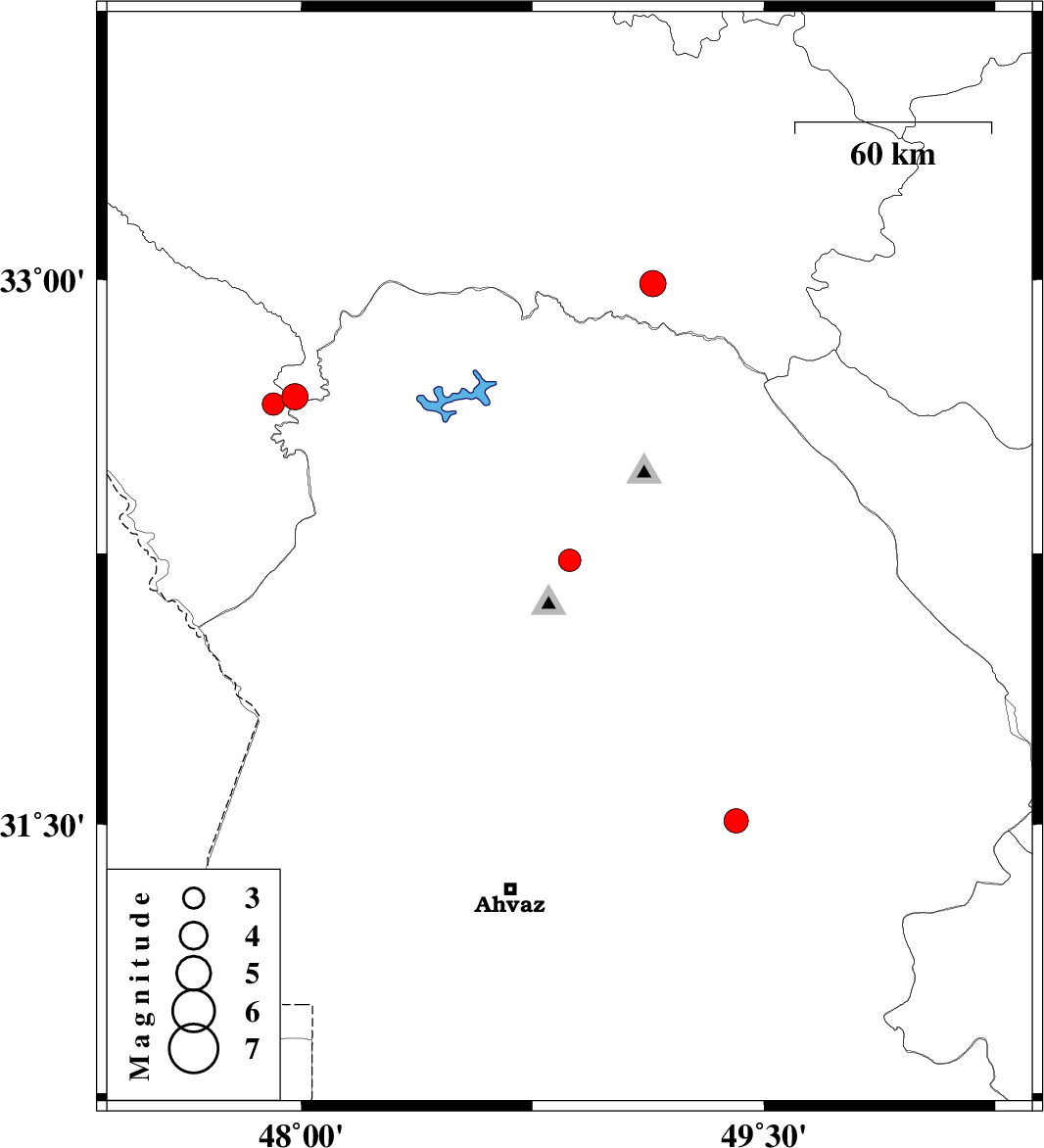 | 2019/08/26 | 20:44:05.2 | 01:14:05.2 | 32.23 | 48.87 | 14 | ML3.2 | Khoozestan Province, 21 km North of Shushtar | ||