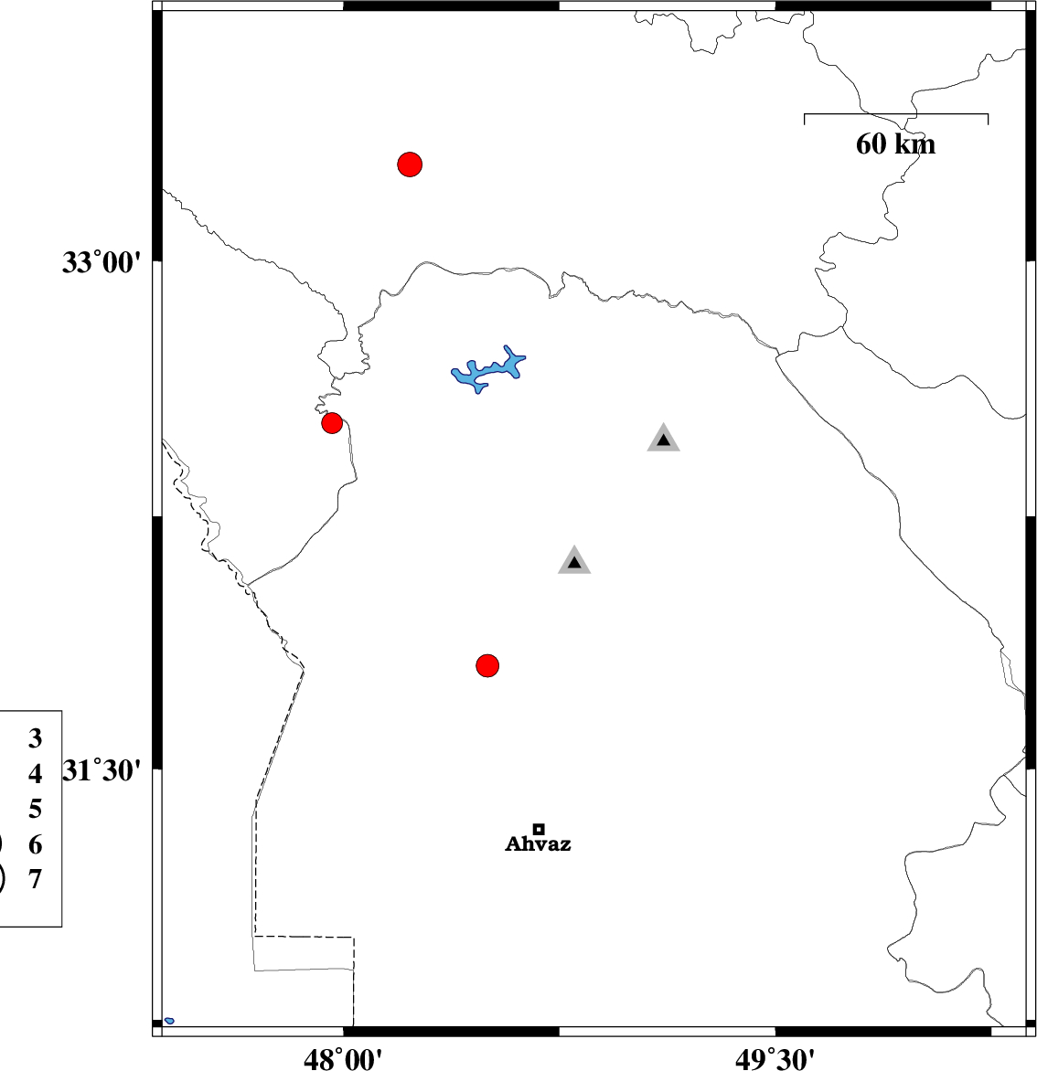 | 2019/08/22 | 17:11:57.0 | 21:41:57.0 | 32.68 | 47.98 | 20 | ML3.8 | Lorestan Province, 43 km North-West of Andimeshk | ||