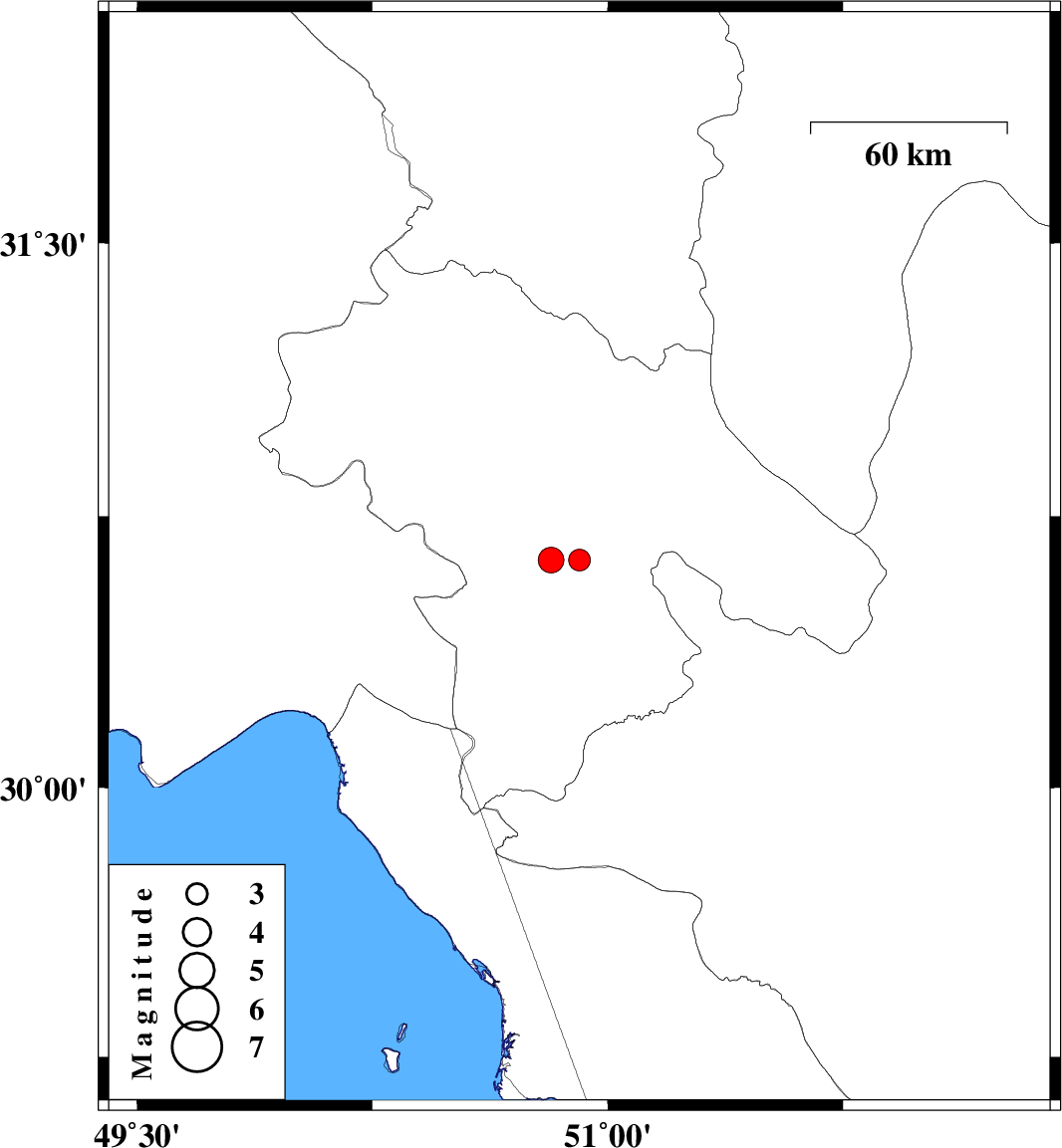 | 2019/08/27 | 12:28:30.8 | 16:58:30.8 | 30.63 | 50.91 | 14 | ML3.1 | Kohkiluieh va boyerahmad Province, 33 km North-East of Dogonbadan | ||
