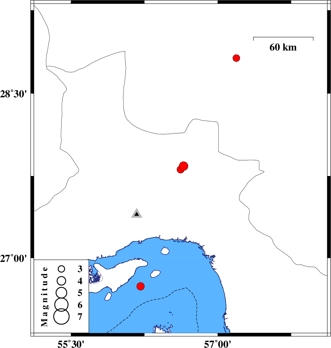 | 2019/08/26 | 20:24:12.8 | 00:54:12.8 | 28.82 | 57.19 | 14 | ML3.2 | Kerman Province, 56 km North-West of Jiroft | ||