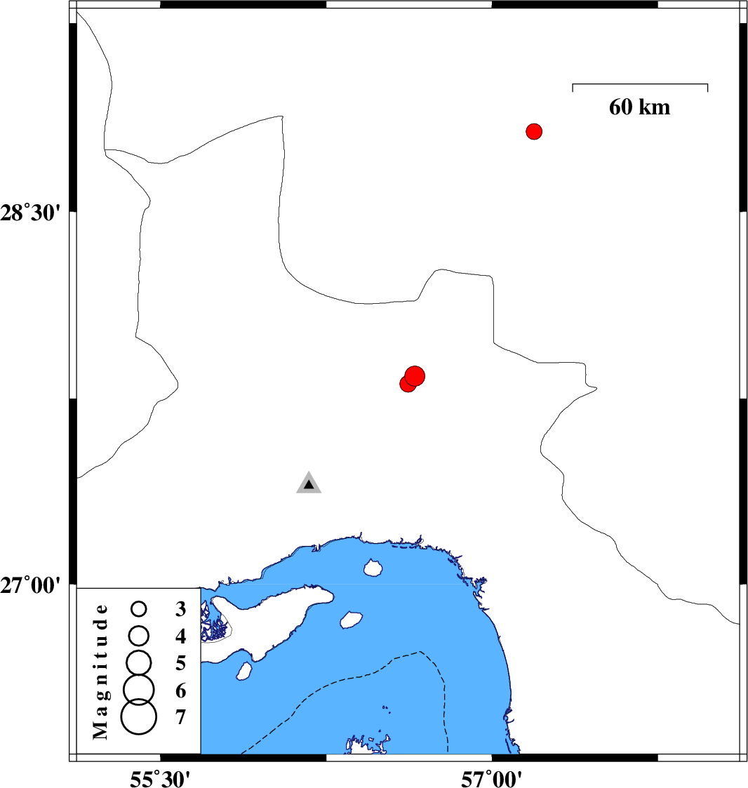 | 2019/08/27 | 19:03:41.6 | 23:33:41.6 | 27.81 | 56.62 | 12 | ML3.4 | Hormozgan Province, 77 km North-East of Bandar-e abbas | ||