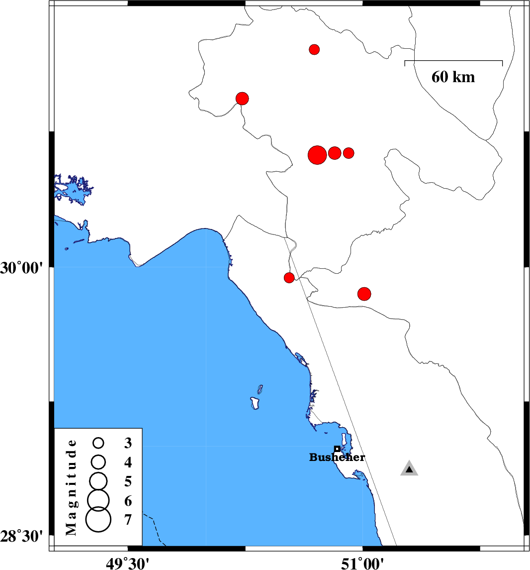 | 2019/08/29 | 14:56:57.6 | 19:26:57.6 | 29.94 | 50.53 | 10 | ML3 | Khoozestan Province, 41 km North of Bandar-e genaveh | ||