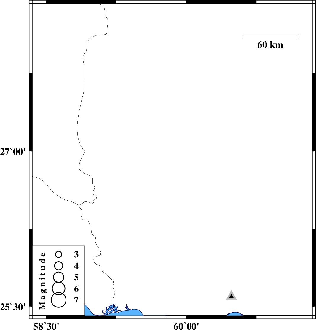 | 2019/09/03 | 18:47:02.8 | 23:17:02.8 | 26.91 | 59.85 | 55 | ML4.6 | Sistan va Baloochestan Province, 84 km North-West of Nikshahr |