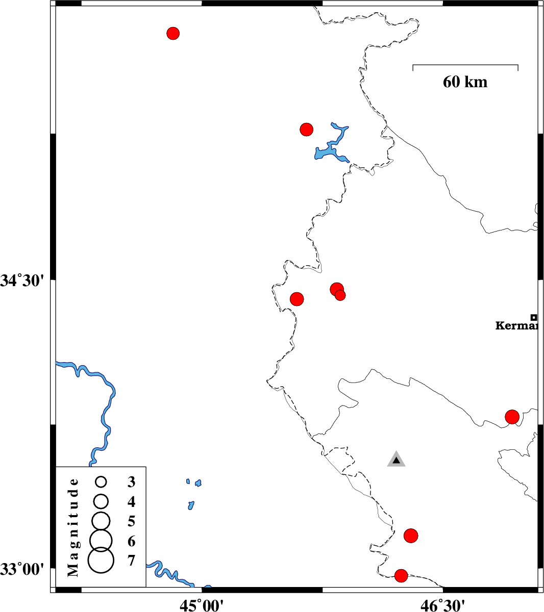| 2019/08/30 | 11:28:09.9 | 15:58:09.9 | 34.42 | 45.86 | 10 | ML2.9 | Kermanshah Province, 6 km of Sar-e pol-e zahab | ||