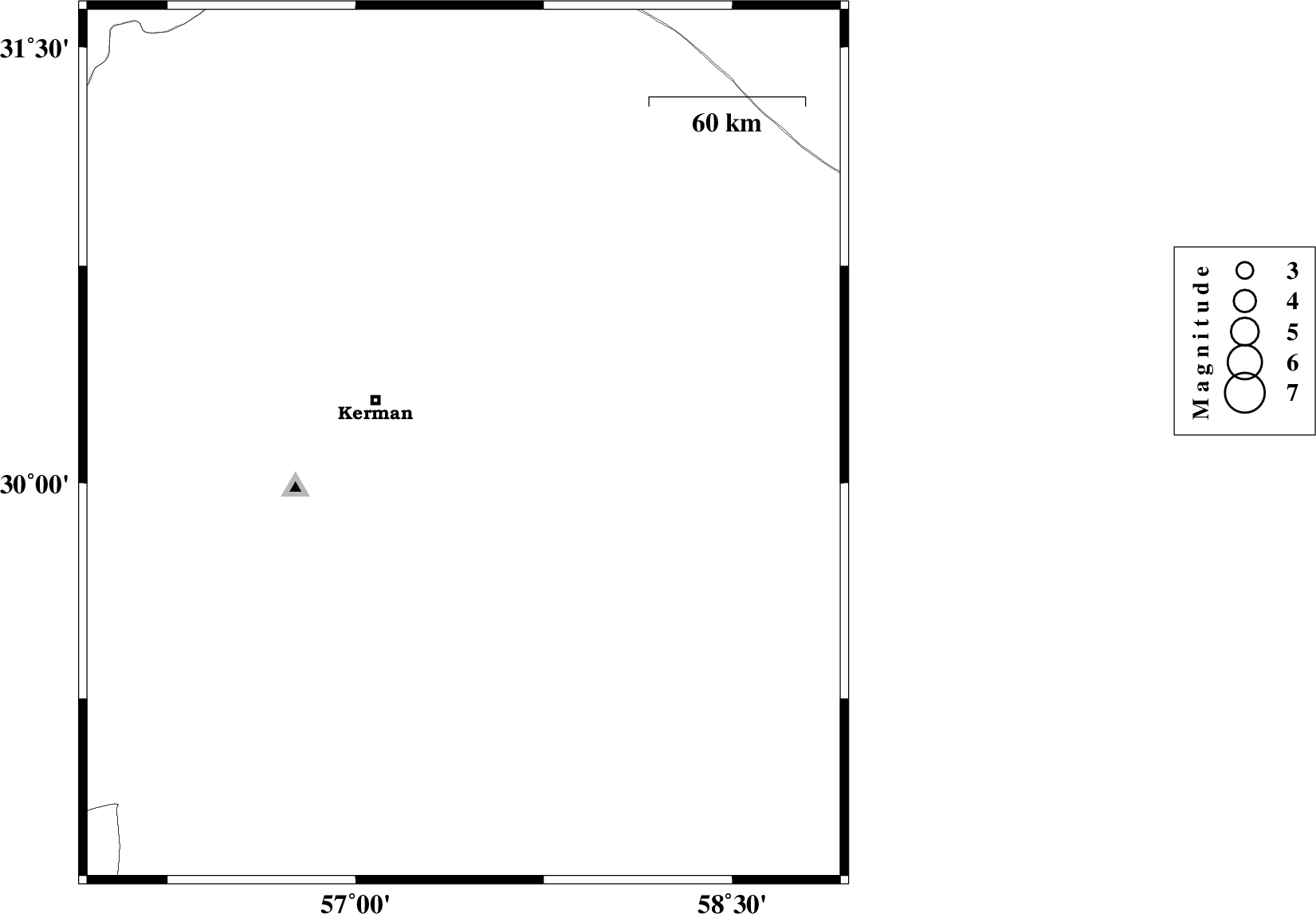 | 2019/08/29 | 17:02:55.1 | 21:32:55.1 | 30.64 | 57.3 | 15 | ML3 | Kerman Province, 45 km North-East of Kerman | ||