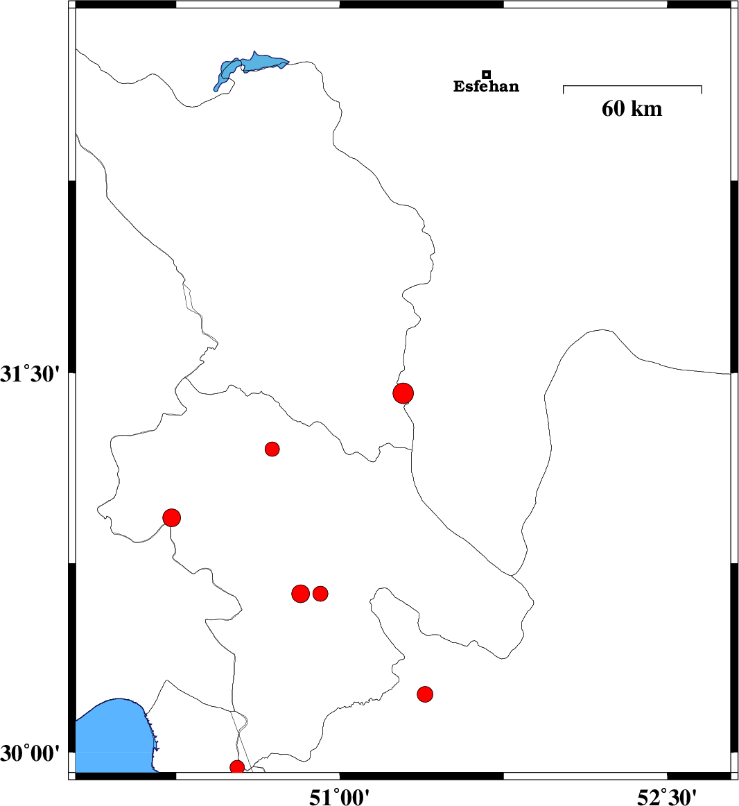 2019/09/09 | 03:33:47.0 | 08:03:47.0 | 30.23 | 51.39 | 22 | ML:3.2 | Fars Province, 18 km North-West of Nurabad | ||