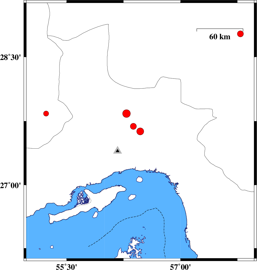 2019/09/16 16:55:45.3 21:25:45.3 27.8456.2915 ML4.6 Hormozgan Province, 73 km North of Bandar-e abbas