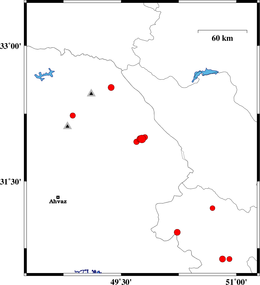 2019/08/26 | 20:44:05.2 | 01:14:05.2 | 32.23 | 48.87 | 14 | ML:3.2 | Khoozestan Province, 21 km North of Shushtar |