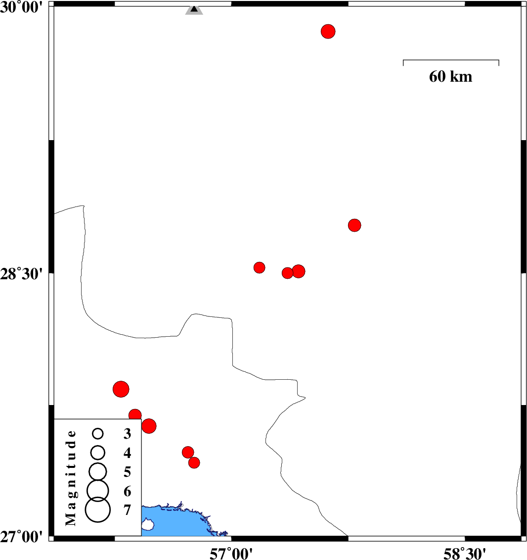 | 2019/09/23 | 12:23:17.2 | 15:53:17.2 | 28.5 | 57.36 | 14 | ML3.3 | Kerman Province, 42 km South-West of Jiroft | ||