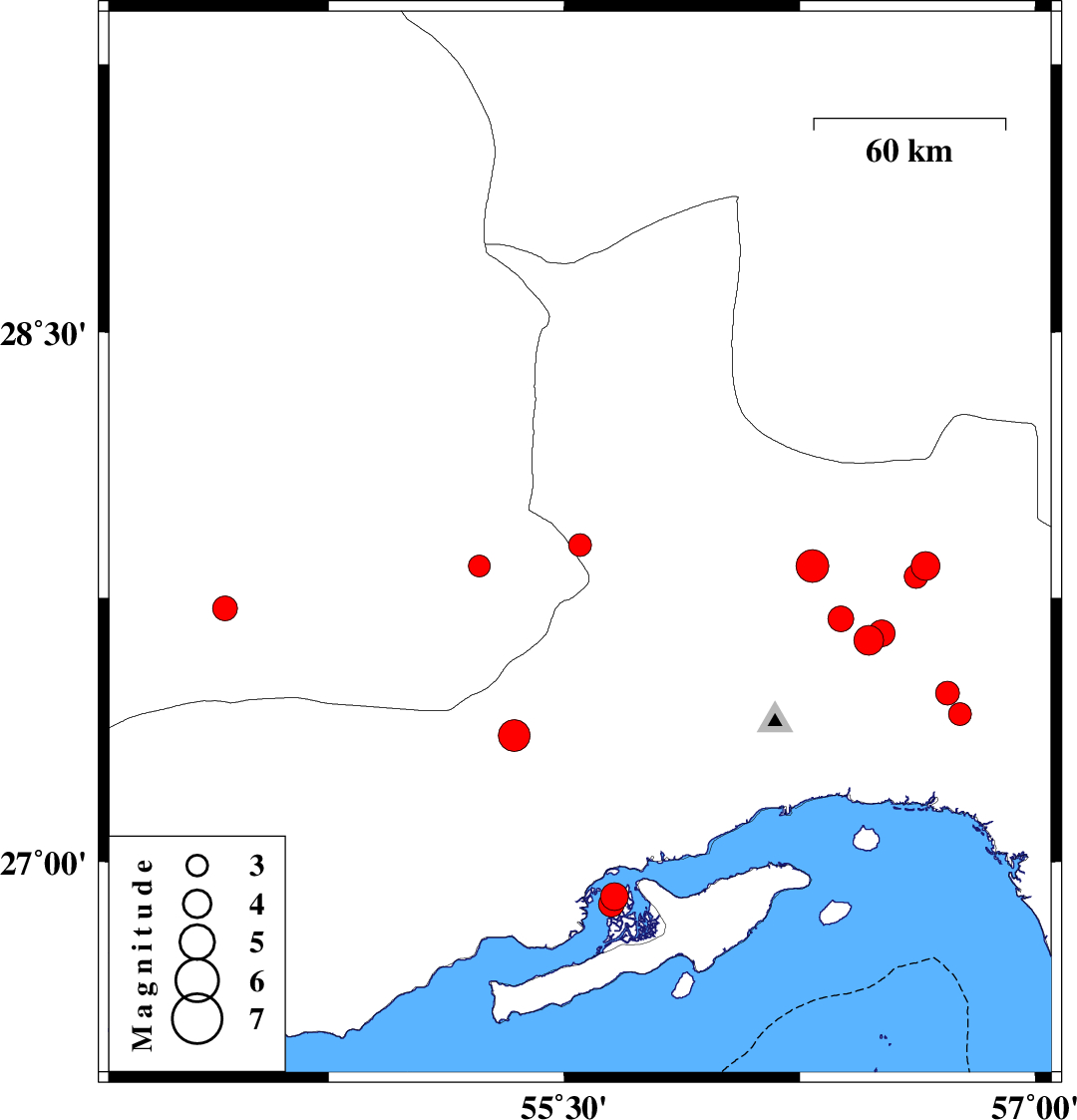 | 2019/09/08 | 19:13:46.5 | 23:43:46.5 | 26.9 | 55.66 | 14 | ML4 | Persian Gulf, 60 km -West of Qeshm | ||