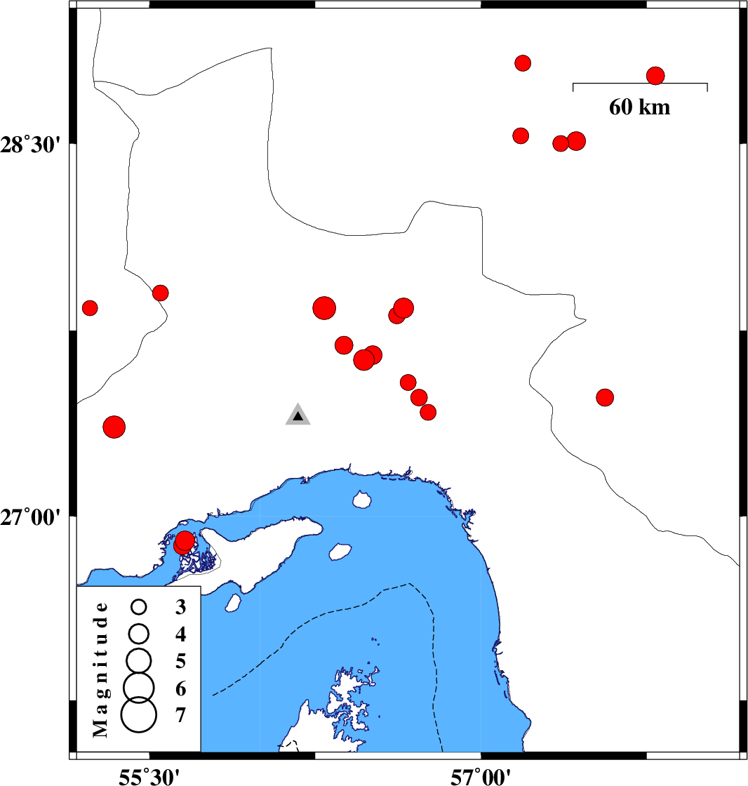 | 2019/09/08 | 19:13:46.5 | 23:43:46.5 | 26.9 | 55.66 | 14 | ML4 | Persian Gulf, 60 km -West of Qeshm | ||