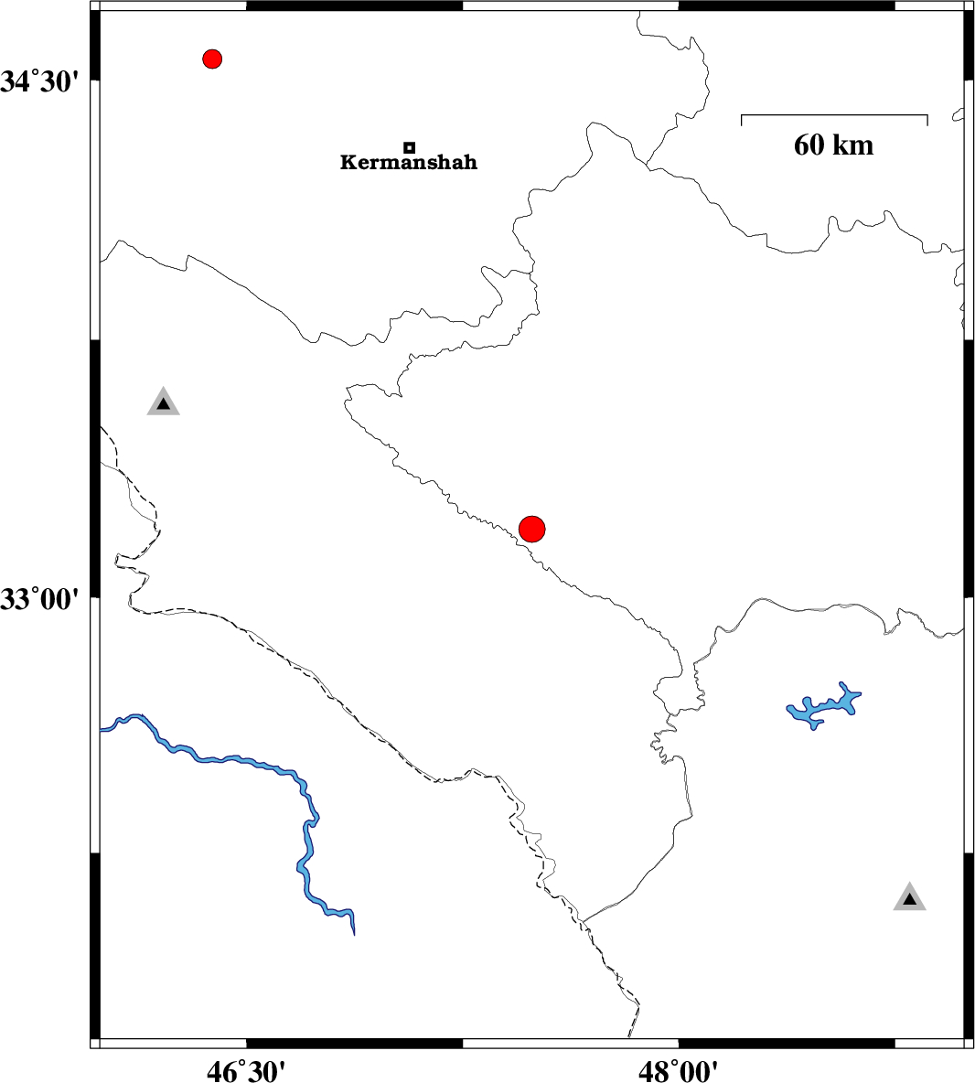 | 2019/09/24 | 01:12:33.3 | 04:42:33.3 | 34.56 | 46.38 | 14 | ML2.9 | Kermanshah Province, 30 km South of Javanrud |