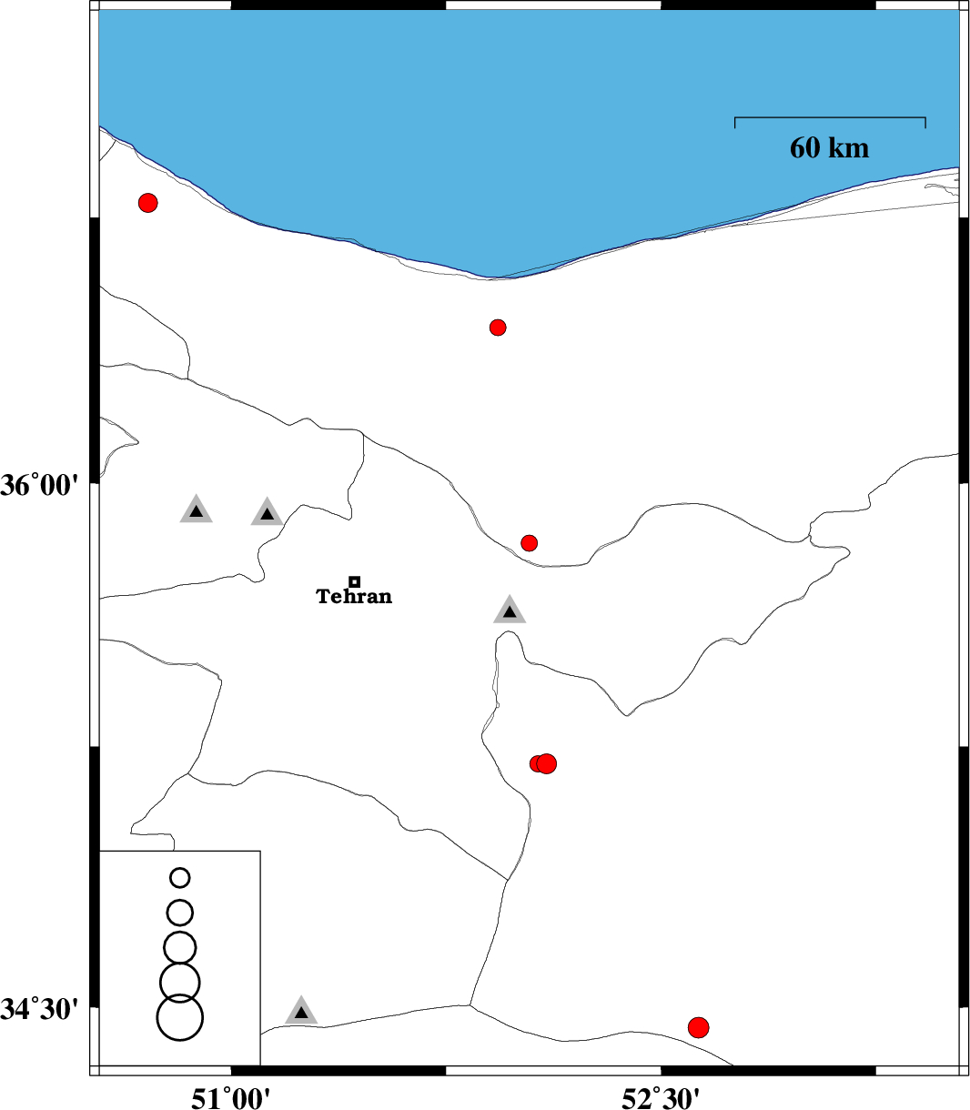 | 2019/09/26 | 11:37:47.7 | 15:07:47.7 | 36.79 | 50.71 | 14 | ML3 | Mazandaran Province, 14 km South of Ramsar | ||