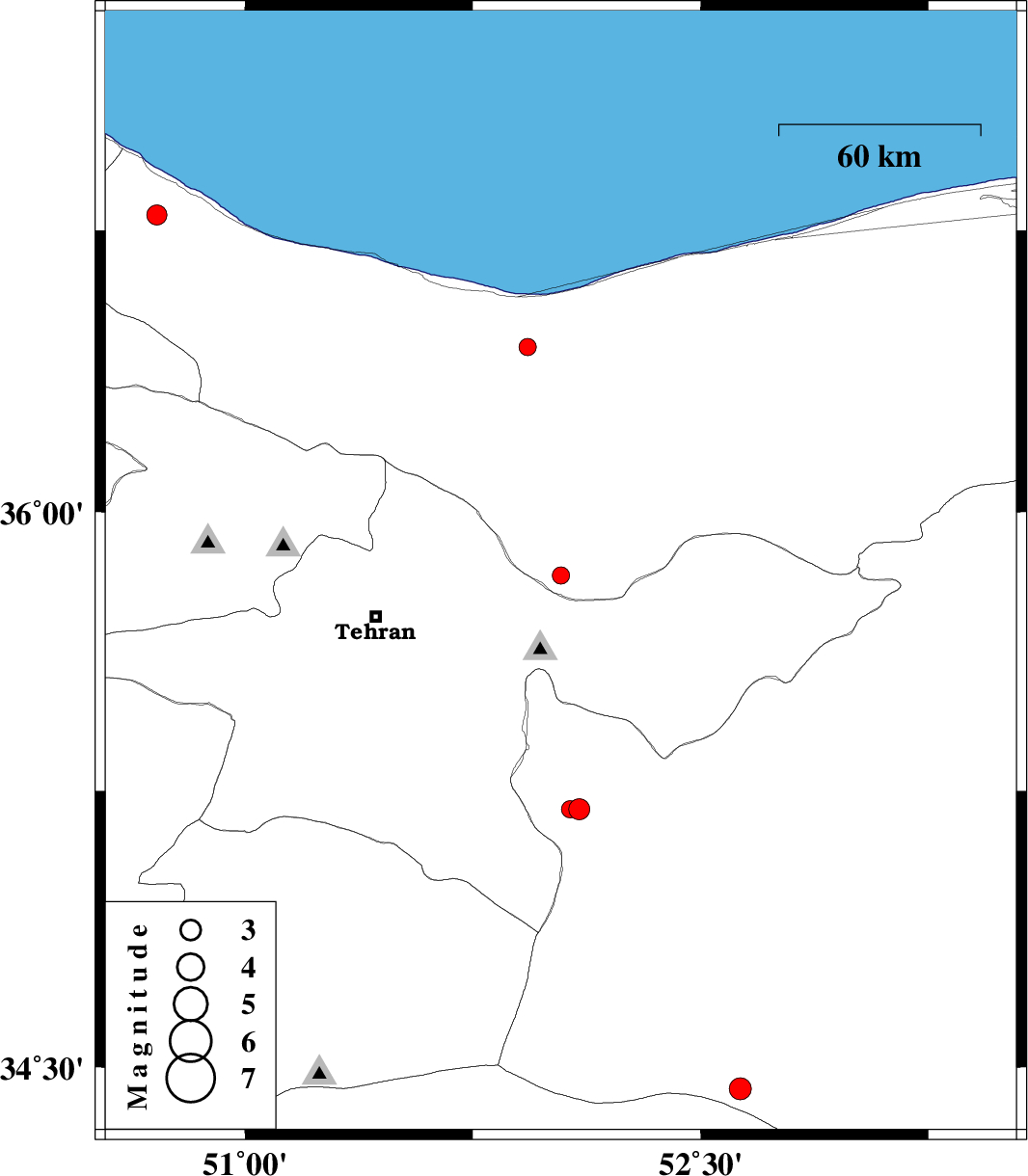| 2019/09/02 | 15:23:01.8 | 19:53:01.8 | 34.44 | 52.63 | 14 | ML3.3 | Semnan Province, 90 km South-East of Garmsar | ||
