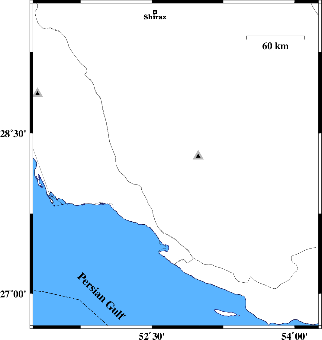 2019/09/26 | 14:23:51.5 | 17:53:51.5 | 28.22 | 52.75 | 5 | ML:3.1 | Fars Province, 39 km South-West of Qir va Karzin | ||