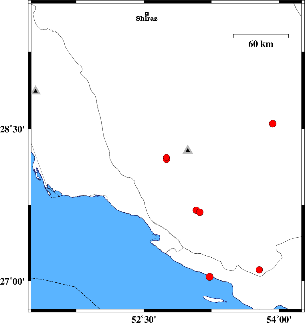 | 2019/09/26 | 14:23:51.5 | 17:53:51.5 | 28.22 | 52.75 | 5 | ML3.1 | Fars Province, 39 km South-West of Qir va Karzin | ||